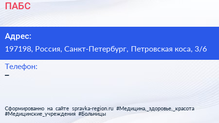 ПАБС по адресу 197198, Россия, Санкт-Петербург, Петровская коса, 3/6 в дальнейшем Организация, размещена в следующих категориях: