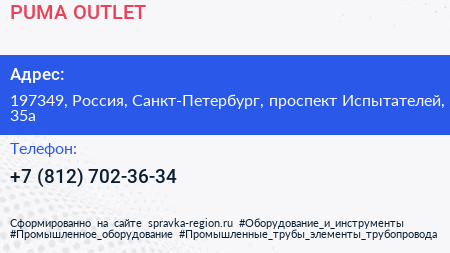 PUMA OUTLET по адресу 197349, Россия, Санкт-Петербург, проспект Испытателей, 35а в дальнейшем Организация, размещена в следующих категориях: