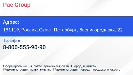 Pac Group по адресу 191119, Россия, Санкт-Петербург, Звенигородская, 22 в дальнейшем Организация, размещена в следующих категориях: