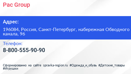 Pac Group по адресу 196084, Россия, Санкт-Петербург, набережная Обводного канала, 96 в дальнейшем Организация, размещена в следующих категориях: