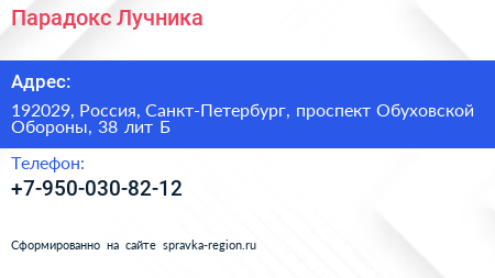 Парадокс Лучника по адресу 192029, Россия, Санкт-Петербург, проспект Обуховской Обороны, 38 лит Б в дальнейшем Организация, размещена в следующих категориях: