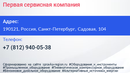 Первая сервисная компания по адресу 190121, Россия, Санкт-Петербург, Садовая, 104 в дальнейшем Организация, размещена в следующих категориях: