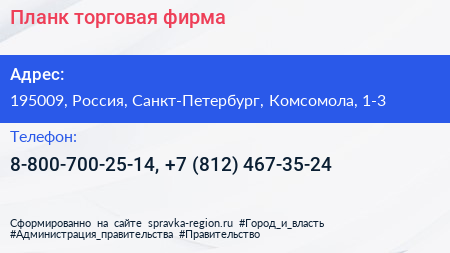 Планк, торговая фирма по адресу 195009, Россия, Санкт-Петербург, Комсомола, 1-3 в дальнейшем Организация, размещена в следующих категориях: