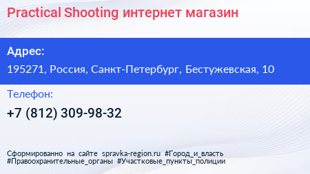 Practical Shooting, интернет-магазин по адресу 195271, Россия, Санкт-Петербург, Бестужевская, 10 в дальнейшем Организация, размещена в следующих категориях: