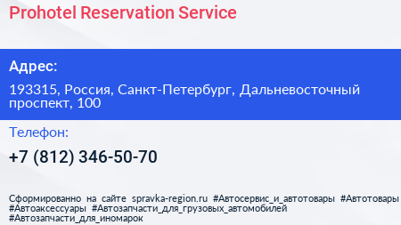 Prohotel Reservation Service по адресу 193315, Россия, Санкт-Петербург, Дальневосточный проспект, 100 в дальнейшем Организация, размещена в следующих категориях: