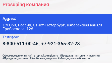 Prosuping, компания по адресу 190068, Россия, Санкт-Петербург, набережная канала Грибоедова, 126 в дальнейшем Организация, размещена в следующих категориях: