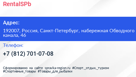 RentalSPb по адресу 192007, Россия, Санкт-Петербург, набережная Обводного канала, 46 в дальнейшем Организация, размещена в следующих категориях: