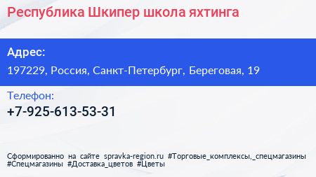 Республика Шкипер, школа яхтинга по адресу 197229, Россия, Санкт-Петербург, Береговая, 19 в дальнейшем Организация, размещена в следующих категориях: