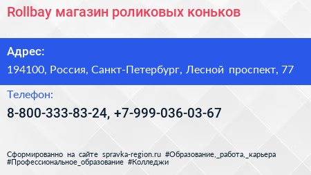 Rollbay, магазин роликовых коньков по адресу 194100, Россия, Санкт-Петербург, Лесной проспект, 77 в дальнейшем Организация, размещена в следующих категориях: