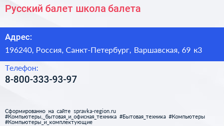 Русский балет, школа балета по адресу 196240, Россия, Санкт-Петербург, Варшавская, 69 к3 в дальнейшем Организация, размещена в следующих категориях: