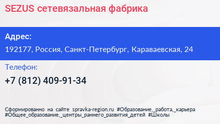 SEZUS, сетевязальная фабрика по адресу 192177, Россия, Санкт-Петербург, Караваевская, 24 в дальнейшем Организация, размещена в следующих категориях: