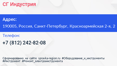 СГ Индустрия по адресу 190005, Россия, Санкт-Петербург, Красноармейская 2-я, 2 в дальнейшем Организация, размещена в следующих категориях:
