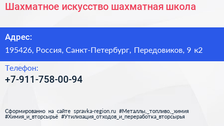 Шахматное искусство, шахматная школа по адресу 195426, Россия, Санкт-Петербург, Передовиков, 9 к2 в дальнейшем Организация, размещена в следующих категориях: