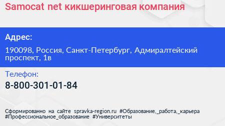 Samocat.net, кикшеринговая компания по адресу 190098, Россия, Санкт-Петербург, Адмиралтейский проспект, 1в в дальнейшем Организация, размещена в следующих категориях: