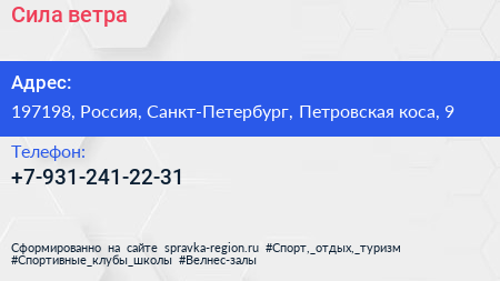 Сила ветра по адресу 197198, Россия, Санкт-Петербург, Петровская коса, 9 в дальнейшем Организация, размещена в следующих категориях: