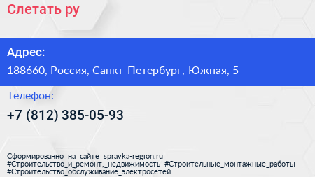 Слетать.ру по адресу 188660, Россия, Санкт-Петербург, Южная, 5 в дальнейшем Организация, размещена в следующих категориях: