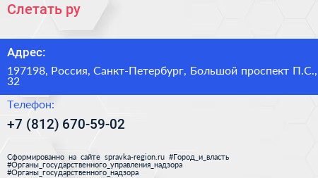 Слетать.ру по адресу 197198, Россия, Санкт-Петербург, Большой проспект П.С., 32 в дальнейшем Организация, размещена в следующих категориях: