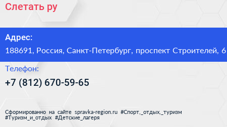 Слетать.ру по адресу 188691, Россия, Санкт-Петербург, проспект Строителей, 6 в дальнейшем Организация, размещена в следующих категориях: