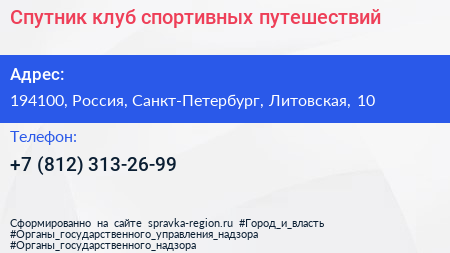 Спутник, клуб спортивных путешествий по адресу 194100, Россия, Санкт-Петербург, Литовская, 10 в дальнейшем Организация, размещена в следующих категориях: