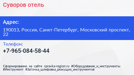 Суворов, отель по адресу 190013, Россия, Санкт-Петербург, Московский проспект, 22 в дальнейшем Организация, размещена в следующих категориях: