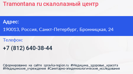 Tramontana.ru, скалолазный центр по адресу 190013, Россия, Санкт-Петербург, Бронницкая, 24 в дальнейшем Организация, размещена в следующих категориях: