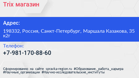 Trix, магазин по адресу 198332, Россия, Санкт-Петербург, Маршала Казакова, 35 к2г в дальнейшем Организация, размещена в следующих категориях:
