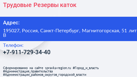 Трудовые Резервы, каток по адресу 195027, Россия, Санкт-Петербург, Магнитогорская, 51 лит В в дальнейшем Организация, размещена в следующих категориях: