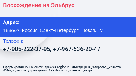 Восхождение на Эльбрус по адресу 188669, Россия, Санкт-Петербург, Новая, 19 в дальнейшем Организация, размещена в следующих категориях: