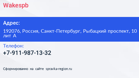 Wakespb по адресу 192076, Россия, Санкт-Петербург, Рыбацкий проспект, 10 лит А в дальнейшем Организация, размещена в следующих категориях: