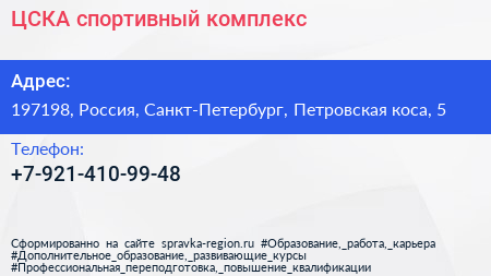 ЦСКА, спортивный комплекс по адресу 197198, Россия, Санкт-Петербург, Петровская коса, 5 в дальнейшем Организация, размещена в следующих категориях: