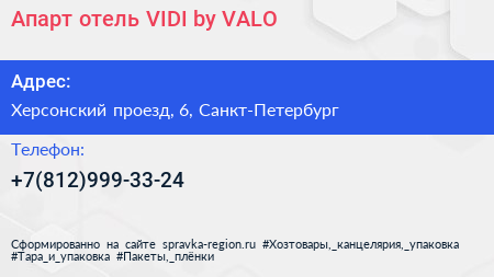 Апарт-отель VIDI by VALO по адресу Херсонский проезд, 6, Санкт-Петербург в дальнейшем Организация, размещена в следующих категориях:
