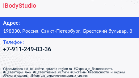 iBodyStudio по адресу 198330, Россия, Санкт-Петербург, Брестский бульвар, 8 в дальнейшем Организация, размещена в следующих категориях: