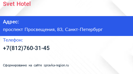 Svet Hotel по адресу проспект Просвещения, 83, Санкт-Петербург в дальнейшем Организация, размещена в следующих категориях: