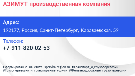 АЗИМУТ, производственная компания по адресу 192177, Россия, Санкт-Петербург, Караваевская, 59 в дальнейшем Организация, размещена в следующих категориях: