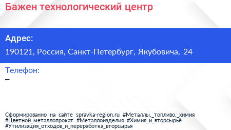 Бажен, технологический центр по адресу 190121, Россия, Санкт-Петербург, Якубовича, 24 в дальнейшем Организация, размещена в следующих категориях: