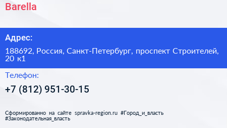 Barella по адресу 188692, Россия, Санкт-Петербург, проспект Строителей, 20 к1 в дальнейшем Организация, размещена в следующих категориях: