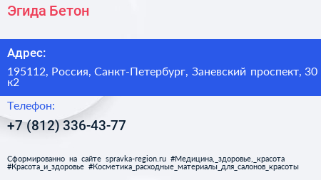 Эгида Бетон по адресу 195112, Россия, Санкт-Петербург, Заневский проспект, 30 к2 в дальнейшем Организация, размещена в следующих категориях: