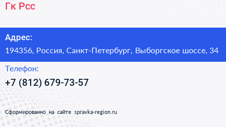 Гк Рсс по адресу 194356, Россия, Санкт-Петербург, Выборгское шоссе, 34 в дальнейшем Организация, размещена в следующих категориях: