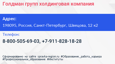 Голдман групп, холдинговая компания по адресу 198095, Россия, Санкт-Петербург, Швецова, 12 к2 в дальнейшем Организация, размещена в следующих категориях: