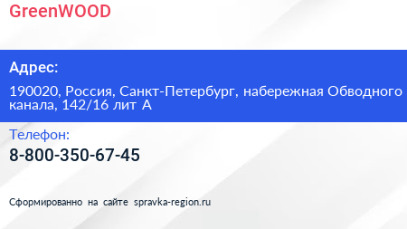 GreenWOOD по адресу 190020, Россия, Санкт-Петербург, набережная Обводного канала, 142/16 лит А в дальнейшем Организация, размещена в следующих категориях: