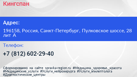 Кингспан по адресу 196158, Россия, Санкт-Петербург, Пулковское шоссе, 28 лит А в дальнейшем Организация, размещена в следующих категориях: