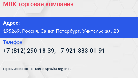 МВК, торговая компания по адресу 195269, Россия, Санкт-Петербург, Учительская, 23 в дальнейшем Организация, размещена в следующих категориях: