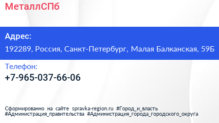МеталлСПб по адресу 192289, Россия, Санкт-Петербург, Малая Балканская, 59Б в дальнейшем Организация, размещена в следующих категориях: