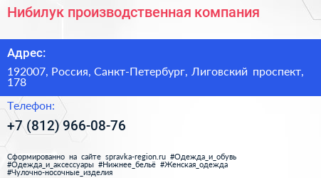 Нибилук, производственная компания по адресу 192007, Россия, Санкт-Петербург, Лиговский проспект, 178 в дальнейшем Организация, размещена в следующих категориях: