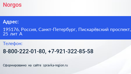 Norgos по адресу 195176, Россия, Санкт-Петербург, Пискарёвский проспект, 25 лит А в дальнейшем Организация, размещена в следующих категориях: