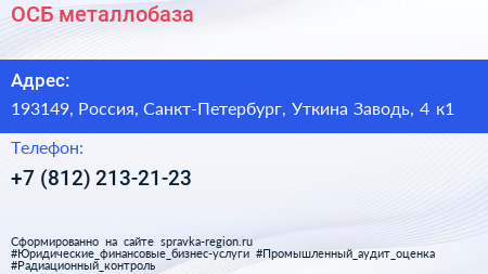 ОСБ, металлобаза по адресу 193149, Россия, Санкт-Петербург, Уткина Заводь, 4 к1 в дальнейшем Организация, размещена в следующих категориях: