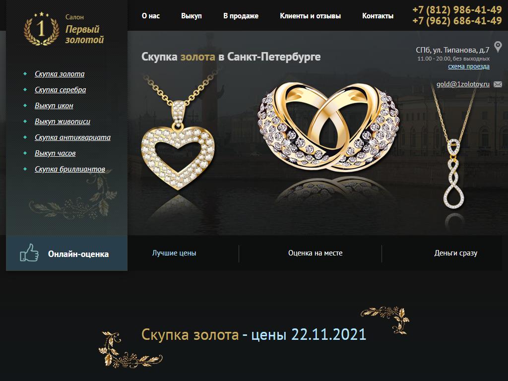 Первый Золотой, компания по скупке золота и антиквариата по адресу 196135, Россия, Санкт-Петербург, Типанова, 7 в дальнейшем Организация, размещена в следующих категориях: