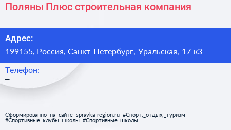 Поляны Плюс, строительная компания по адресу 199155, Россия, Санкт-Петербург, Уральская, 17 к3 в дальнейшем Организация, размещена в следующих категориях:
