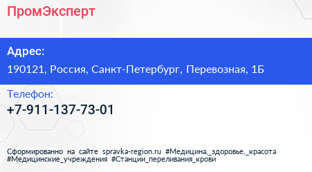 ПромЭксперт по адресу 190121, Россия, Санкт-Петербург, Перевозная, 1Б в дальнейшем Организация, размещена в следующих категориях:
