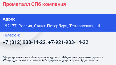 Прометалл СПб, компания по адресу 192177, Россия, Санкт-Петербург, Тепловозная, 14 в дальнейшем Организация, размещена в следующих категориях: